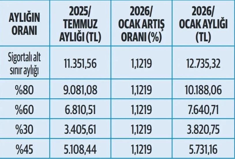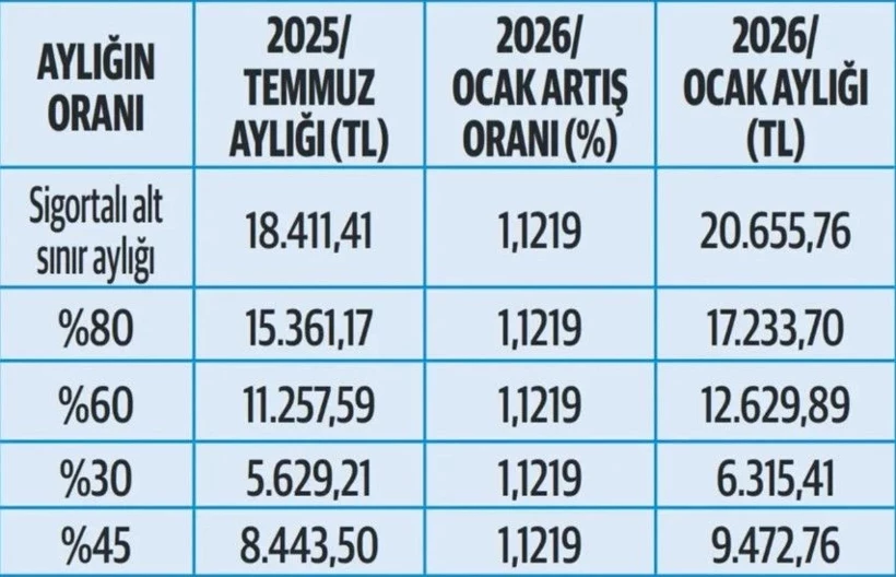 Yapılan artışla birlikte hak sahiplerinin aldığı maaşlar yeniden hesaplandı ve taban ödeme tutarlarında güncelleme yapıldı.