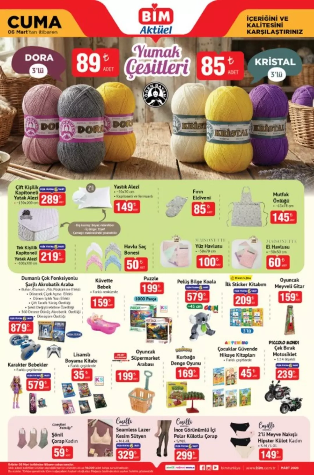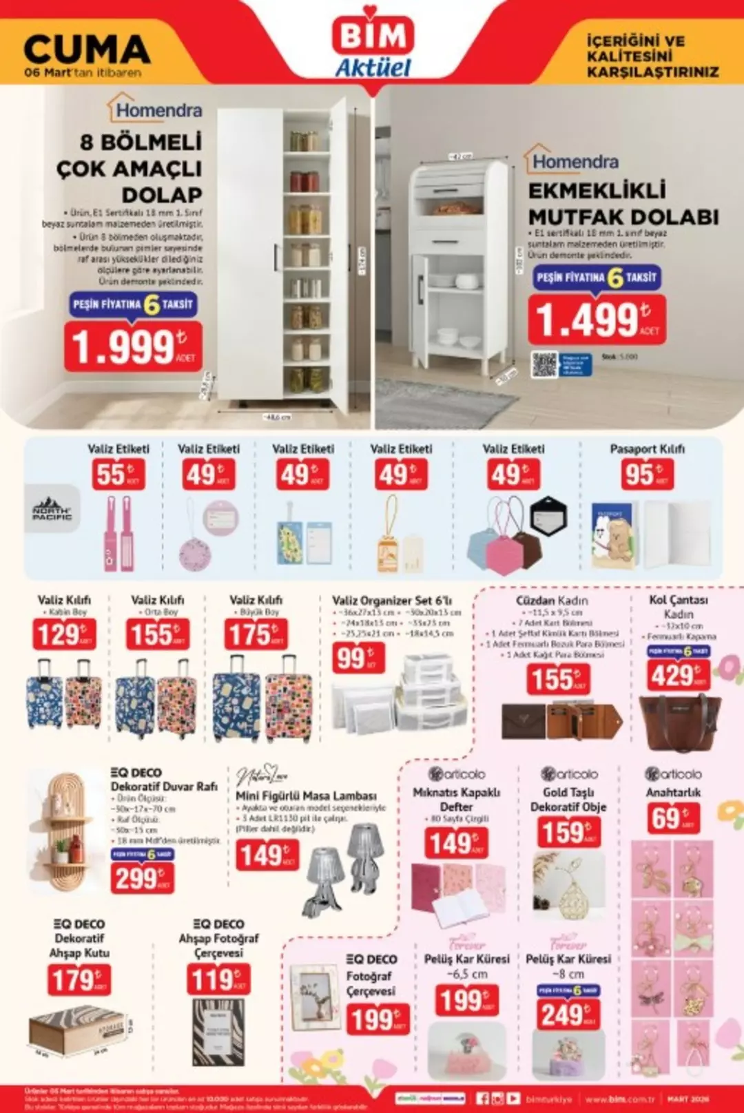 BİM’in 6 Mart 2026 aktüel kataloğundaki ürünler sınırlı stoklarla Cuma günü itibarıyla mağazalarda satışa sunulacak. Yoğun ilgi gören ürünlerin kısa sürede tükenmesi bekleniyor.
